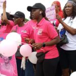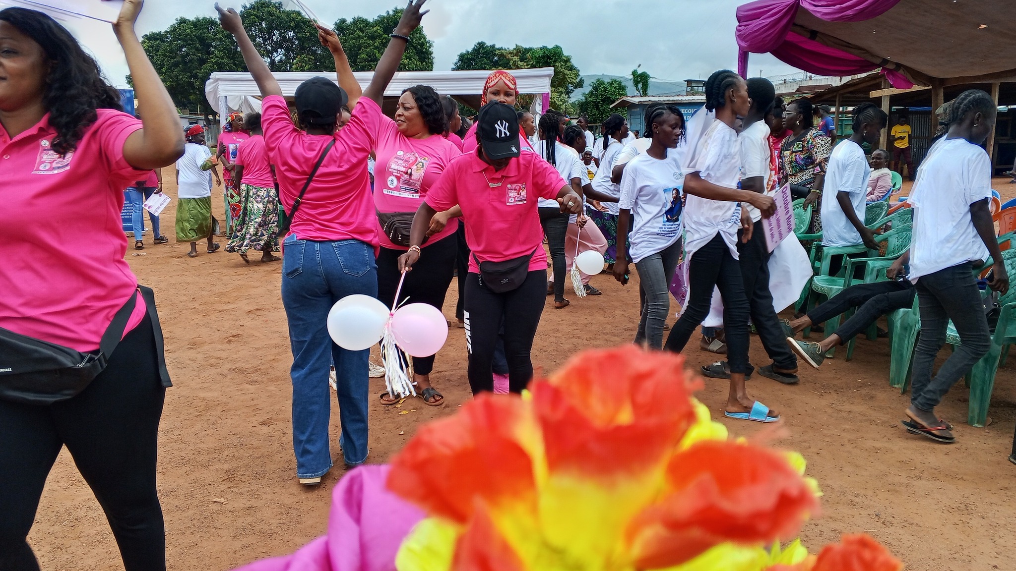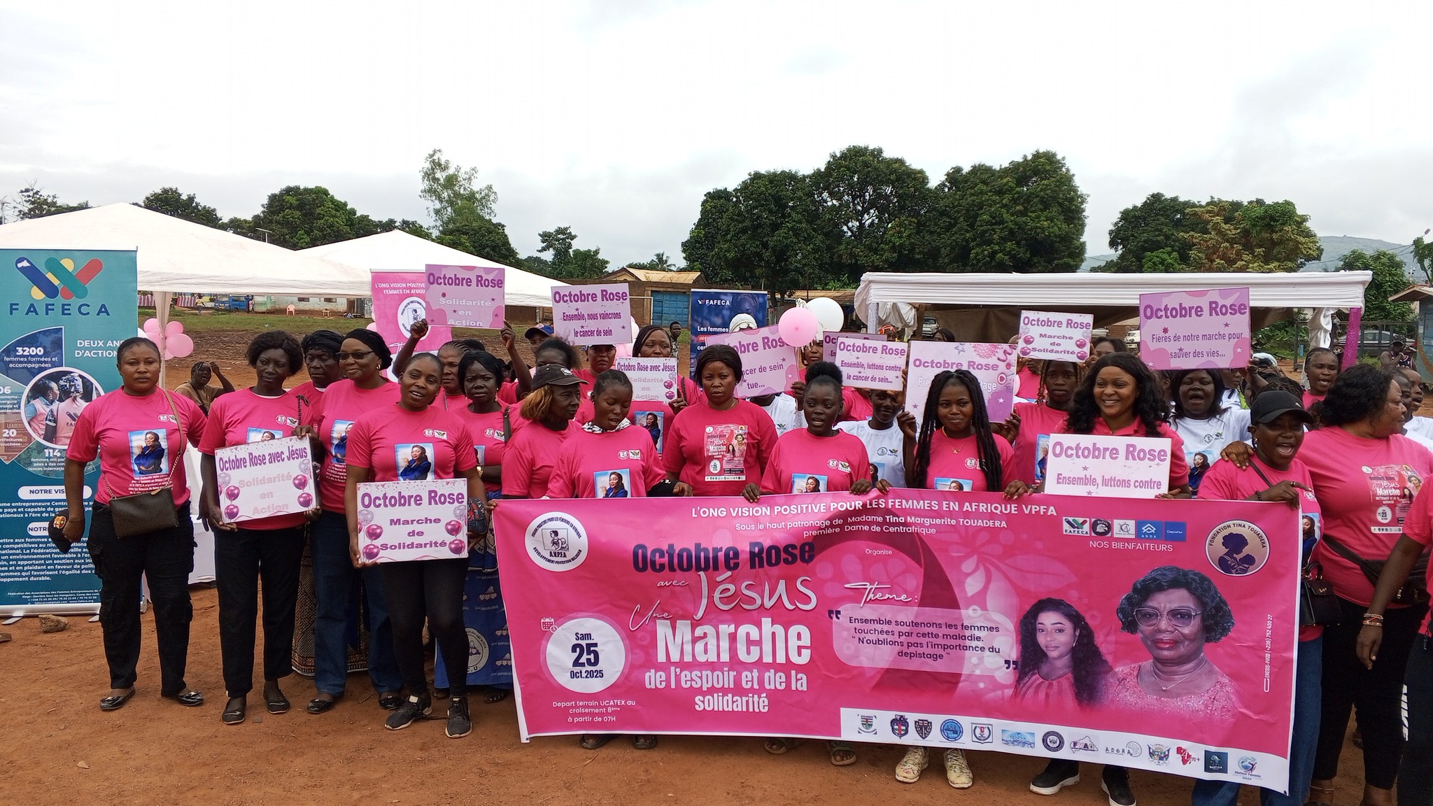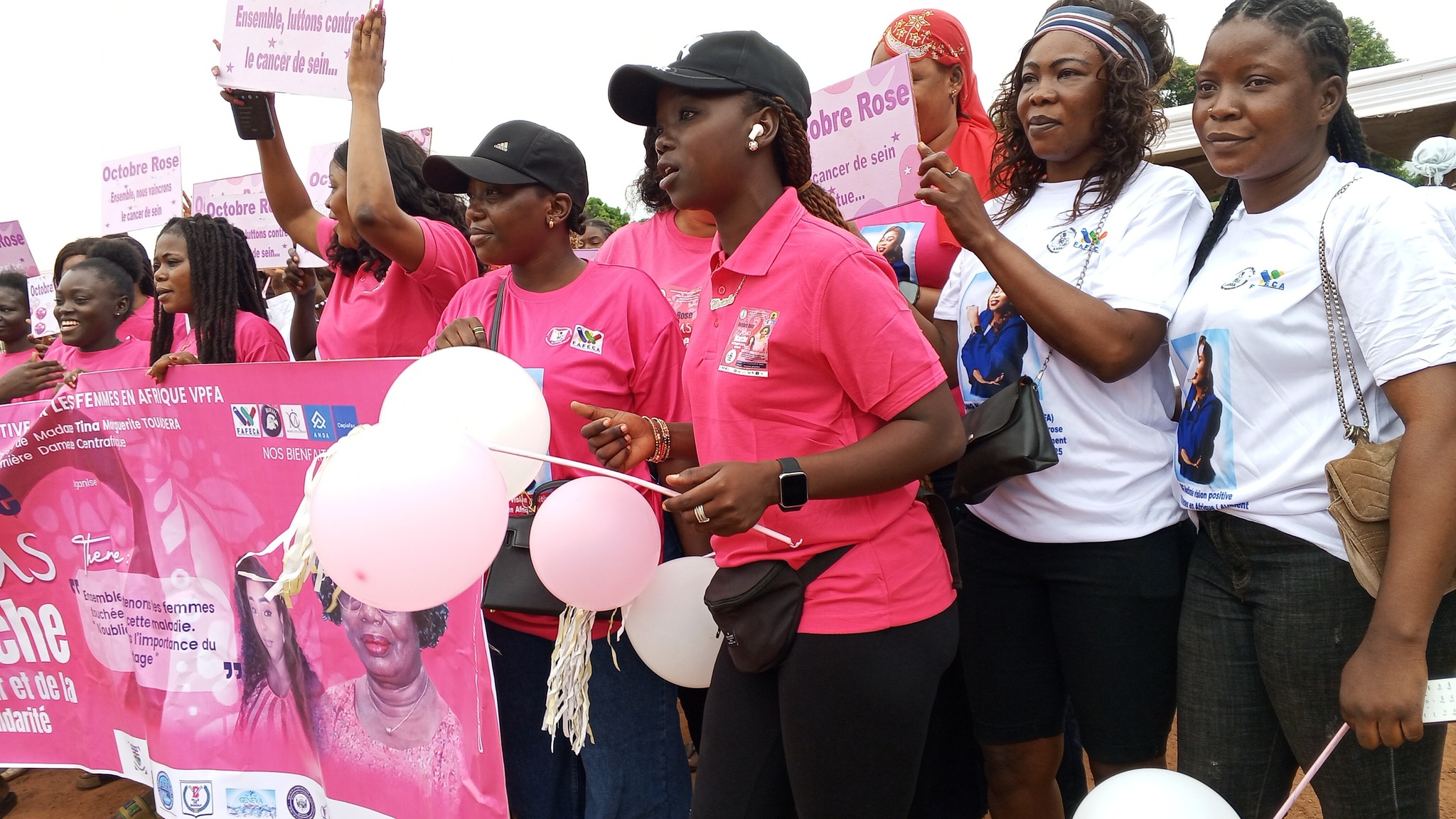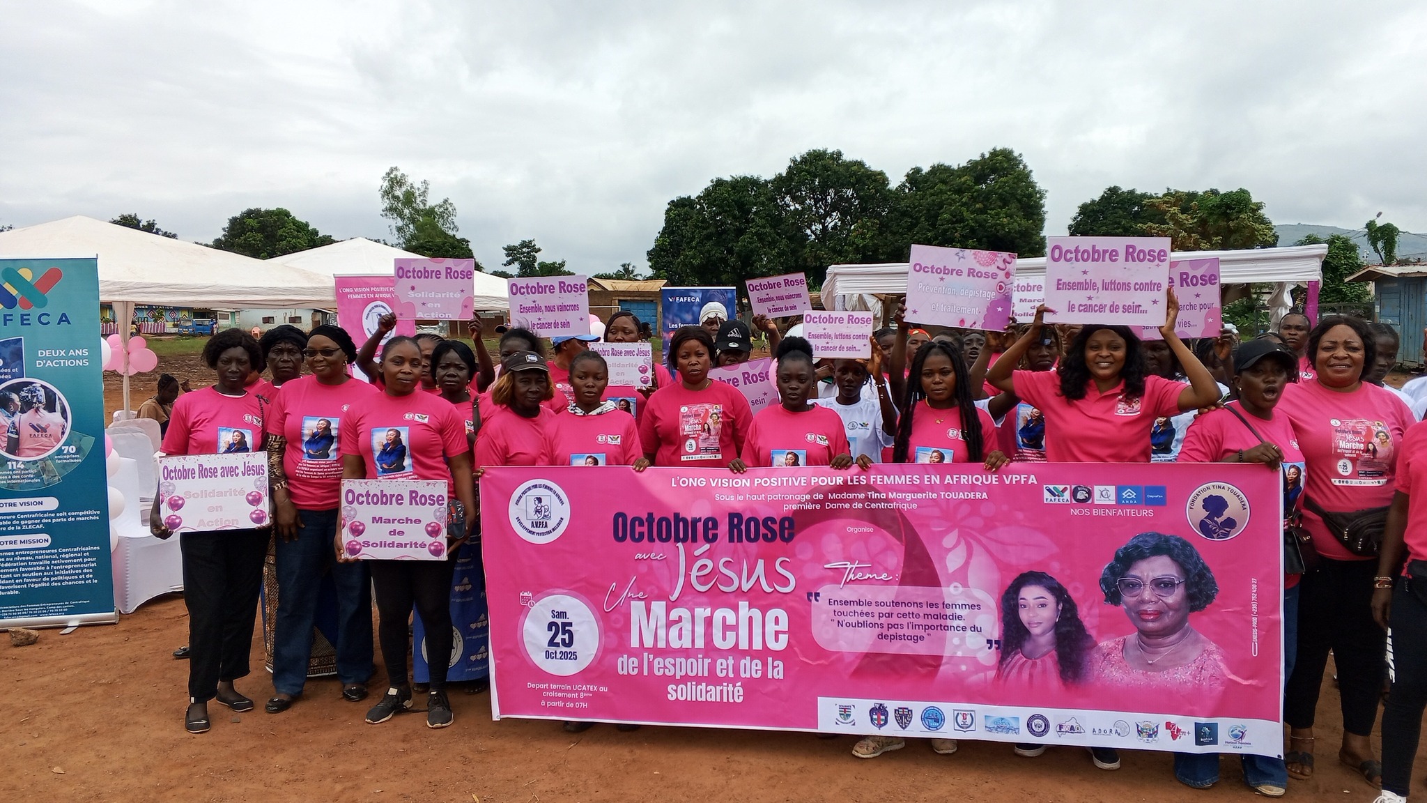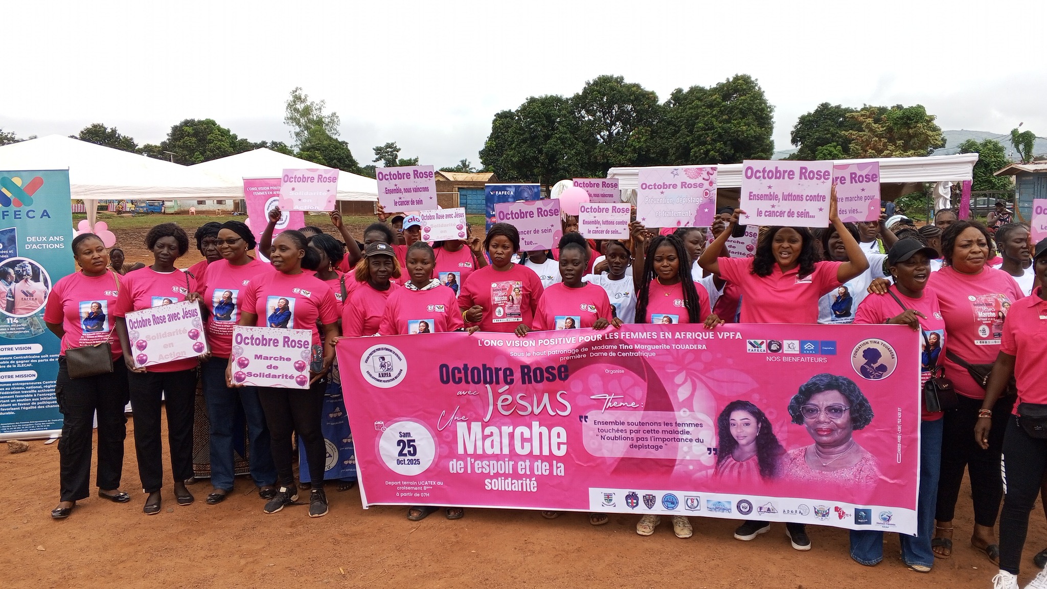 Toujours dans cet élan pour la lutte contre le cancer du sein, L’ONG Vision Positive pour les Femmes en Afrique, en partenariat avec la Fondation Tina TOUADERA a organisé ce jour une marche dénommée Octobre Rose avec Jésus. La Première Dame de Centrafrique représentée par son personnel a pris part à cette manifestation pour montrer sa solidarité aux femmes victimes du cancer du sein. Cette marche a démarré au rond-point du 8em arrondissement pour s’achever sur le terrain de LUCATEX.